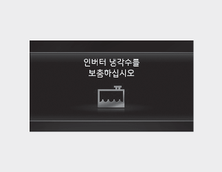 하이브리드 시스템 관련 하드웨어를 보호하는 냉각수가 부족할 경우 표시됩니다. 경고문이 표시되면 주행을 중지하고 냉각수 양을 확인하시기 바랍니다. 장시간 냉각수가 부족한 상태에서 주행하면 하이브리드 시스템에 심각한 영향을 줄 수 있으며, 주행이 불가한 상태가 될 수 있습니다.