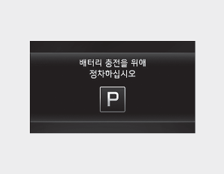 하이브리드 배터리 충전을 위해 차량을 안전한 곳에 정차한 후, 「P」(주차)단으로 변속하십시오.