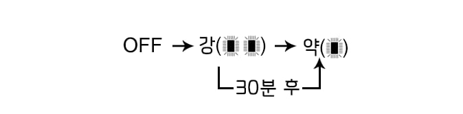 좌석 히터 작동(표시등 켜짐) 상태에서 좌석 온도가 일정 온도 이상 높아지면 자동으로 작동을 멈추고, 온도가 내려가면 다시 작동합니다.