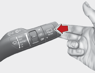 스위치를 운전자 반대방향으로 밀면 뒷유리에 와셔액이 분출되면서 와이퍼가 수 회 작동합니다.