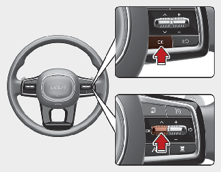 계기판에 "N단 유지 모드를 설정하려면 OK 버튼을 길게 누르십시오" 메시지가 뜨면, 스티어링 휠에 있는 OK 버튼을 길게 누르십시오.