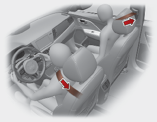 안전벨트 프리텐셔너는 앞좌석 및 뒷좌석 왼쪽/오른쪽에 장착됩니다.