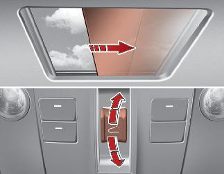 선루프 스위치를 앞쪽으로 누르면 파워 선블라인드가 자동으로 닫힙니다. 단, 선루프 글라스가 열려 있을 경우 글라스가 먼저 닫힙니다.