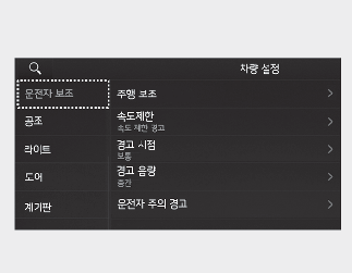 운전 중에 차량 설정을 하지 마십시오. 주의력이 떨어져 사고가 날 수 있습니다.