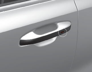 (터치 센서 타입의 경우) 앞좌석 실외 도어 손잡이에 있는 음각 부분으로 된 도어 잠금 센서부를 터치하십시오.