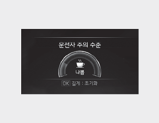'운전자 주의 수준'이 1단계 미만으로 떨어질 경우 계기판에 휴식 권유 문구를 표시하고 경고음이 울려 운전자에게 알립니다.
