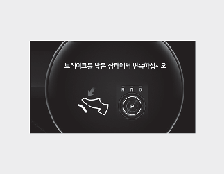 변속할 때 브레이크 페달을 밟지 않으면 표시창에 경고문이 나타납니다.