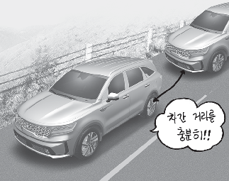 미끄러지기 쉬운 노면에서는 충분한 차간거리를 유지하십시오.