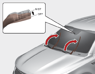 엔진 시동을 끈 후 20초 이내에 와이퍼가 최상단으로 올라갈 때까지 와이퍼 스위치를 2초 이상 「MIST」 위치로 올리십시오.