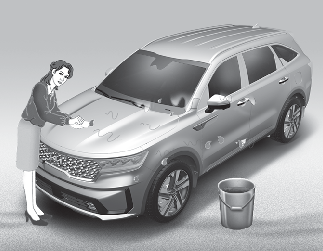 차의 더러움이 심할 때는 자동차 전용 세척 세제를 사용하여 세차하십시오. 가정용 중성세제를 사용하면 고무 제품의 변색을 일으킬 수 있습니다. 또한 부드러운 스펀지나 헝겊으로 닦아내고 먼지 입자로 인한 긁힘을 최소화하기 위하여 스펀지를 자주 헹궈 주면서 세척하십시오. 물은 미지근한 수돗물 또는 이와 같은 보통의 물을 사용하십시오. 세차 후는 차체의 물기를 완전히 닦아내십시오.