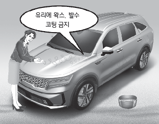 앞유리에 왁스가 묻으면 와이퍼가 손상될 수 있으므로 주의하십시오.