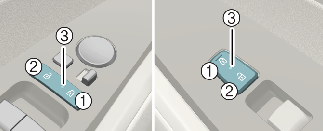 Když jsou všechny dveře vozidla zamknuté, rozsvítí se světelný indikátor dveří (3) na dveřích u řidiče a dveřích u spolujezdce. Pokud jsou některé dveře odemknuté, indikátory zhasnou.