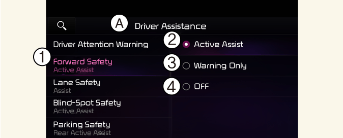 Pokud změníte Způsoby varování, lze je použít pro každou funkci systému jízdního asistenta. Zkontrolujte a změňte je v každé funkci.