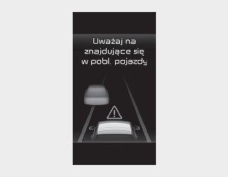 Jeśli podczas działania inteligentnego tempomatu ryzyko kolizji z pojazdem poprzedzającym jest wysokie, w zestawie wskaźników pojawia się komunikat ostrzegawczy i rozlega się sygnał dźwiękowy, aby ostrzec kierowcę.