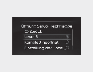 Die Öffnungshöhe der Heckklappe kann in den Einstellungen des Kombiinstruments oder im Infotainmentsystem eingestellt werden.