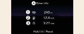 Dersom den beregnede kjøredistansen er under 1 km (1 mile), vil kjøredistanse til drivstofftanken er tom vises som «---».