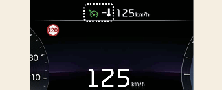 Hvis fartsgrensen for veien endres mens manuell fartsgrenseassistanse eller smart hastighetskontroll er aktivert, vises det en pil opp eller ned for å informere føreren om at den innstilte hastigheten må endres. Da kan føreren endre den innstilte hastigheten i henhold til fartsgrensen ved å bruke bryteren (+) eller (-) på rattet.