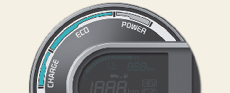 มาตรวัดระบบไฮบริดจะระบุว่าสภาพการขับขี่ในปัจจุบันนั้นประหยัดน้ำมันหรือไม่