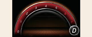 ช่วงการแสดงเกียร์จะอยู่ระหว่าง 1 ถึง 6 ซึ่งขึ้นอยู่กับเกียร์ที่เลือก