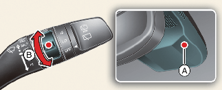 หมุนสวิตช์ควบคุมความเร็วที่ปัดน้ำฝน (B) เพื่อปรับความเร็วที่ปัดน้ำฝน