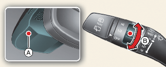 เซ็นเซอร์ตรวจจับน้ำฝน (A) จะตรวจจับปริมาณน้ำฝนและปรับช่วงความเร็วของที่ปัดน้ำฝนให้เหมาะสม