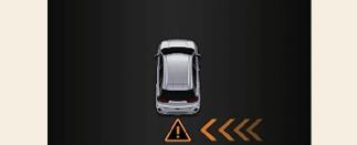 หากยานพาหนะที่เซ็นเซอร์ตรวจจับได้เคลื่อนที่เข้าใกล้จากด้านหลังซ้าย/ขวาของรถคุณ เสียงเตือนจะดังขึ้น ไฟเตือนที่กระจกมองข้างจะกะพริบ และข้อความจะปรากฏขึ้นบนจอ LCD