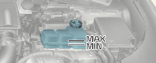 การตรวจสอบระดับน้ำยาหล่อเย็น ควรเติมระดับของน้ำยาหล่อเย็นให้อยู่ระหว่างเครื่องหมาย MAX (สูงสุด) และ MIN (ต่ำสุด) ทางด้านข้างของถังพักน้ำยาหล่อเย็นเมื่อเครื่องยนต์เย็นลง