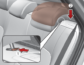 Kadar zadnji sedež postavljate v vodoraven ali pokončen položaj, se prepričajte, da je sprednji sedež pomaknjen naprej kolikor je mogoče. Če ni dovolj prostora, da bi zadnji sedež položili v vodoraven položaj, ne uporabljajte sile. To lahko poškoduje naslonjalo za glavo ali povezane dele sedeža.