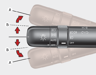 Za delovanje smernikov mora biti vključeno stikalo vžiga. Za vklop smernikov pomaknite ročico navzgor ali navzdol (A).