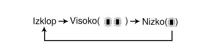 Pri vsakem pritisku na gumb se nastavitev temperature sedeža spremeni sledeče: