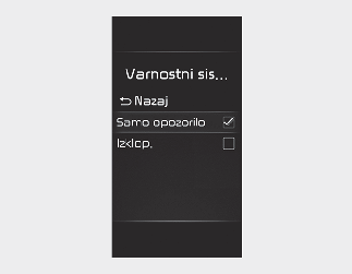 Če je izbrana možnost ‘Off‘ (Izklop), se mora voznik vedno zavedati okolice in voziti varno.