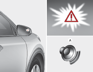 Da bi opozorila voznika, da je zaznano vozilo, bo na zunanjem vzvratnem ogledalu zasvetila opozorilna lučka in zasvetil bo zaslon v višini oči (če je na voljo).