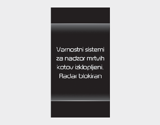 Sistem varnosti pri mrtvem kotu morda ne bo deloval 3 sekunde po zagonu vozila oz. vklopu zadnjih radarjev za prepoznavanje vogalov.
