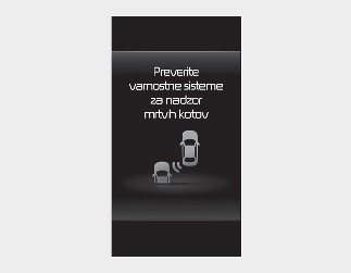 V tem primeru je sistem varnosti pri mrtvem kotu onemogočen. Na instrumentni plošči se prikaže opozorilo ’Radar blocked’ (Radar blokiran).