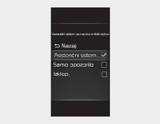 Če je izbrana možnost ‘Warning Only‘ (Samo opozorilo), pomoč pri zaviranju ne bo aktivirana.