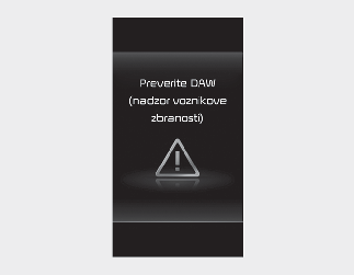 Če opozarjanje voznika na nezbranost ne deluje pravilno, se na instrumentni plošči prikaže opozorilno sporočilo »Check Driver Attention Warning (DAW) system« (Preverite sistem opozarjanja voznika na nezbranost).