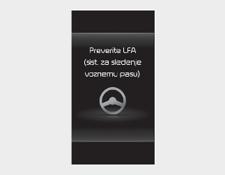 Če sistem za sledenje voznega pasu ne deluje pravilno, se na sklopu instrumentov prikaže opozorilno sporočilo "Check Lane Following Assist (LFA) system" (Preverite sistem za slednje voznega pasu (LKA)). V tem primeru vozilo odpeljite na pregled v servisno delavnico. Podjetje Kia priporoča, da se obrnete na pooblaščenega prodajalca/serviserja vozil Kia.