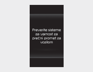 Če funkcija varnosti pri možnosti trčenj pri prečnem prometu zadaj ne deluje pravilno, se na instrumentni plošči prikaže opozorilno sporočilo »Check Rear Cross-Traffic Safety system« (Preverite sistem za možnost trčenj pri prečnem prometu zadaj), funkcija pa se samodejno izklopi ali je njeno delovanje omejeno. V tem primeru odpeljite vozilo na pregled v servisno delavnico. Podjetje Kia priporoča, da se obrnete na pooblaščenega prodajalca/serviserja vozil Kia.