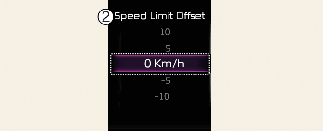 Funcția Asistare limită de viteză funcționează pe baza setării Compensare adăugată la limita de viteză. Dacă doriți să modificați viteza setată în funcție de limita de viteză, setați valoarea de compensare la 0.