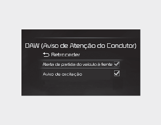 Se a opção "Leading Vehicle Departure Alert" (Alerta de partida do veículo à frente), a função informa o condutor quando o veículo da frente parte depois de uma paragem.