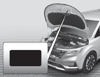 A etiqueta do líquido de refrigeração encontra-se no acabamento da carroçaria frontal.