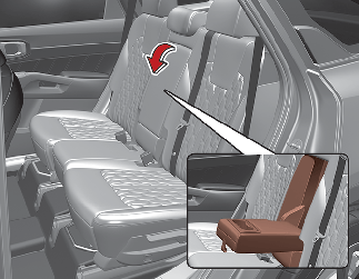 Adjustable armrest is located on each side of 2nd row seatback. To use the armrest, pull it forward from the seatback and adjust to desired angle. Pull it backward to relocate the armrest.