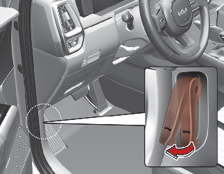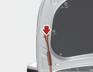 After driving, the engine compartment and support rod will be hot. Grasp the support rod in the area wrapped in rubber to prevent burns.