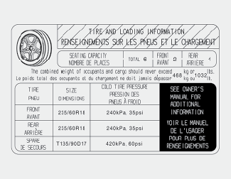 The label located on the driver's door sill gives the original tire size, cold tire pressures recommended for your vehicle, the number of people that can be in your vehicle and vehicle capacity weight.