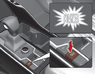 When coming to a complete stop by pressing the brake pedal, the AUTO HOLD indicator changes from white to green indicating the AUTO HOLD is engaged. The vehicle will remain at a standstill even if you release the brake pedal.