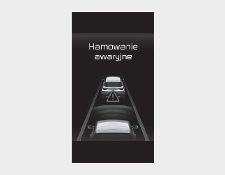 Po wybraniu opcji „Warning Only” (Tylko ostrzeżenie) system FCA zostaje włączony i generuje tylko alarmy ostrzegawcze zgodnie z poziomem ryzyka kolizji. Kierowca musi bezpośrednio obsługiwać hamulce, ponieważ system FCA nie steruje układem hamulcowym.