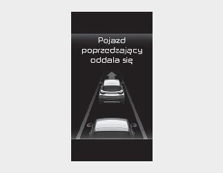 Gdy pojazd poprzedzający rusza, funkcja powiadomienia o ruszeniu pojazdu poprzedzającego informuje o tym kierowcę, wyświetlając w zestawie wskaźników komunikat „Leading vehicle is driving away” (Pojazd poprzedzający rusza) i włączając sygnał dźwiękowy.