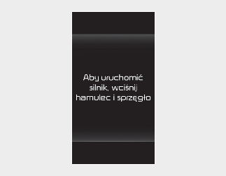 Wcisnąć do końca pedał sprzęgła i ustawić dźwignię zmiany biegów w położeniu neutralnym. Przytrzymując wciśnięty pedał sprzęgła i pedał hamulca, przełączyć przycisk ENGINE START/STOP (Włączenie/Wyłączenie silnika) w stan START (Rozruch). Jeśli stan zmieni się na ACC, zostanie to zasygnalizowane poniższym komunikatem wyświetlanym w zestawie wskaźników.