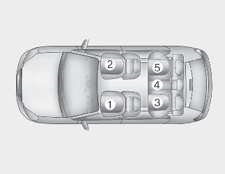 Таблица приведена для автомобилей с расположением руля с левой стороны. За исключением переднего пассажирского сиденья, данные в таблице действительны для автомобилей с правосторонним управлением. Для переднего пассажира праворульного автомобиля с посадочным номером 1 необходимо использовать информацию для посадочного места 2.