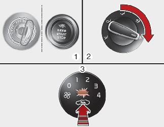 Нажать кнопку регулировки притока свежего воздуха минимум 5 раз в течение 3 секунд.
